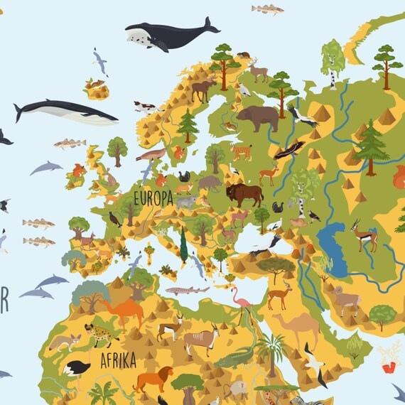 Wanddeko Kinderzimmer Grosse Din A1 841 X 594 Mm Kinder Lernposter Weltkarte Tiere Bunt Wert Sc Com Br